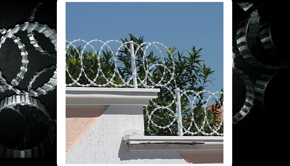 Tipo de concertina mais bonito e com as mesmas características para proteção perimetral, é instalada na posição linear, utiliza menos espaço, sendo utilizada em locais que a concertina não pode ultrapassar a largura do local de instalação.